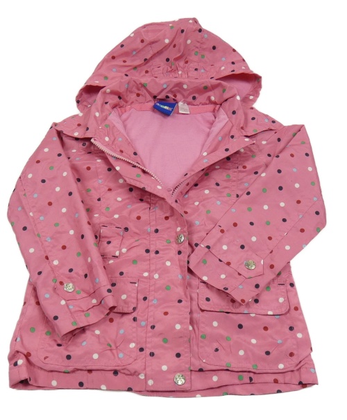 Růžovo-barevná puntíkatá šusťáková jarní bunda s kapucí Lupilu