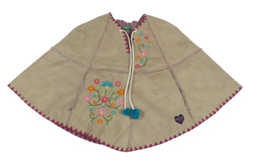 Béžové semišové zateplené pončo s kytičkami Benetton