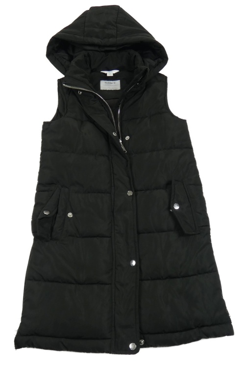 Černá šusťáková zateplená dlouhá vesta s kapucí M&Co.