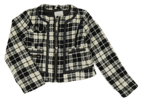 Černo-bílá kostkovaná vlněná podšitá crop bunda Next