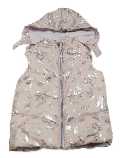 Světlerůžová prošívaná šusťáková zateplená vesta s Elsou a vločkami a kapucí Disney
