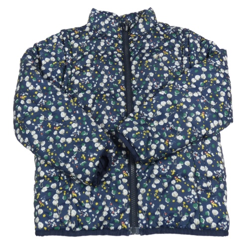 Tmavomodrá květovaná šusťáková zateplená bunda