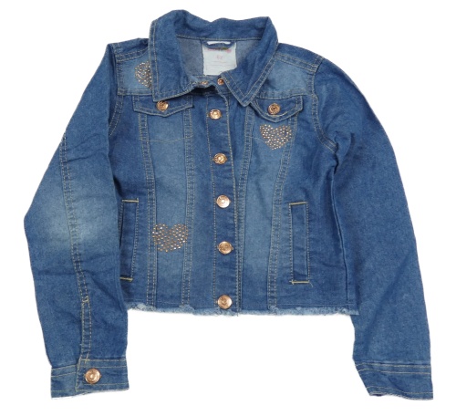 Modrá riflová crop bunda se srdíčky z kamínků a límečkem Lemon Kiss