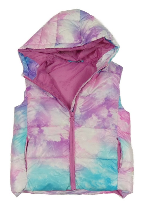 Růžovo-modrá batikovaná šusťáková zateplená vesta s kapucí Dunnes