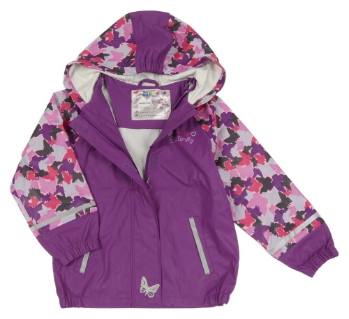 Fialová nepromokavá bunda s motýly a kapucí Lupilu