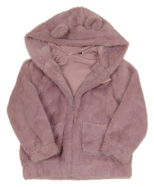 Starorůžová kožešinová podšitá bunda s kapucí s oušky PEP&CO