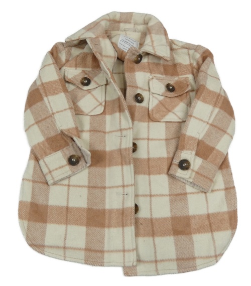 Smetanovo-starorůžová kostkovaná vlněná flaušová košilová bunda Primark