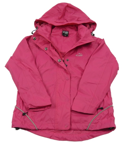 Tmavorůžová šusťáková funkční jarní bunda s nápisem a kapucí