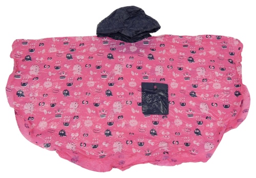 Růžovo-tmavomodré pláštěnkové pončo s příšerkami a kapucí