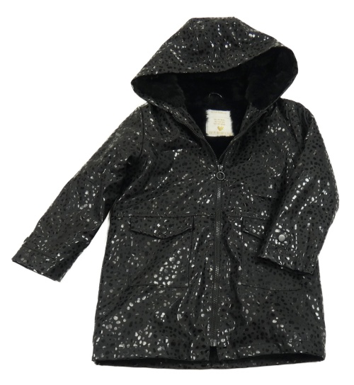 Černý vzorovaný nepromokavý zateplený kabát s kapucí Matalan