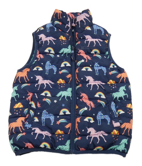 Tmavomodrá šusťáková prošívaná zateplená vesta s jednorožci Mountain Warehouse