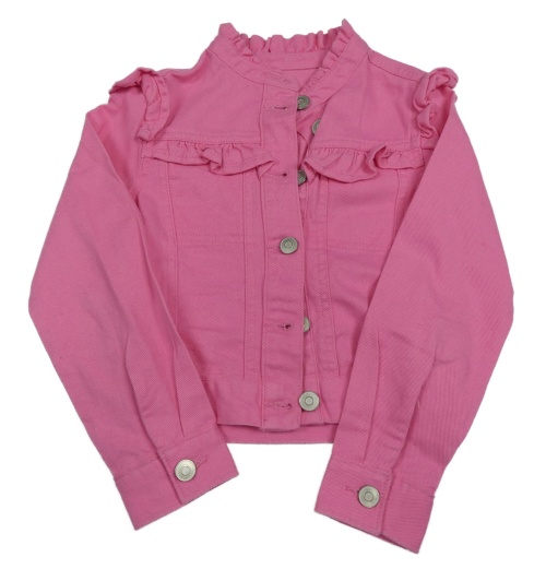 Růžová riflová crop bunda s volánky Dunnes