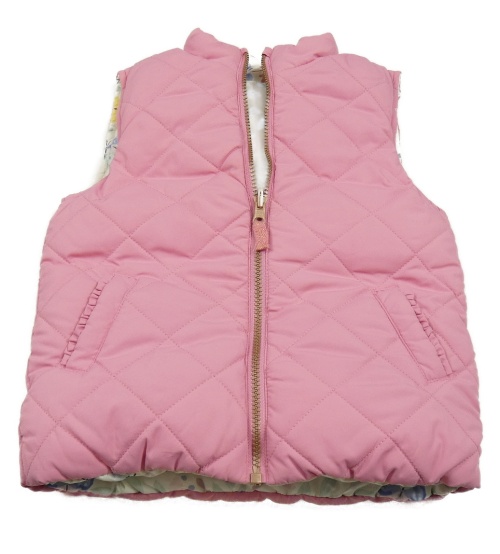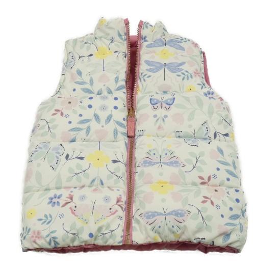 Smetanová květovaná šusťáková zateplená oboustranná vesta s motýly Nutmeg
