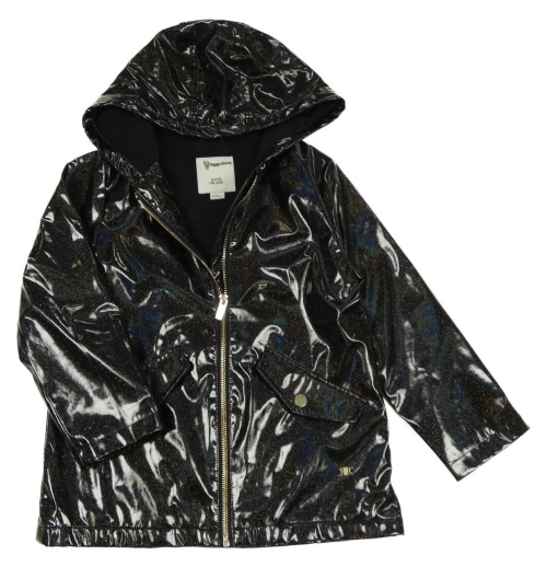 Černá třpytivá lesklá lehce zateplená bunda s kapucí River Island