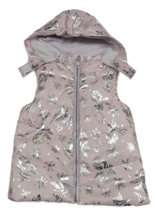 Světlerůžová šusťáková prošívaná zateplená vesta s Elsou a kapucí Disney