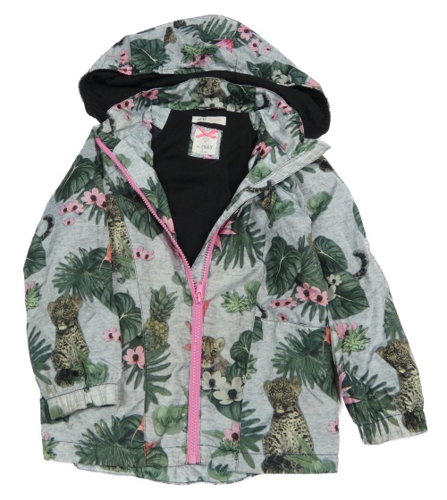 Šedá šusťáková jarní bunda s listy a odepínací kapucí H&M