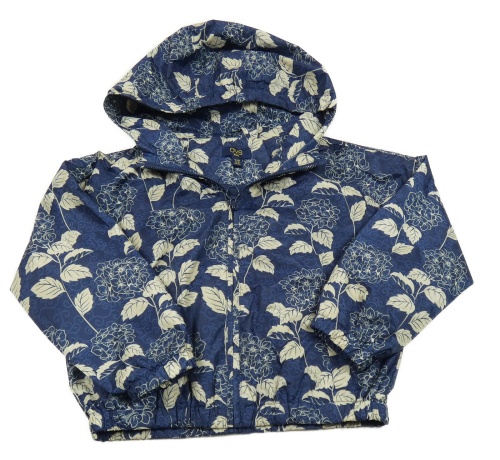 Tmavomodrá vzorovaná šusťáková jarní bunda s listy a kapucí OVS