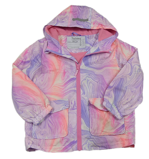 Modrofialovo-lila-bílo-neonově korálová batikovaná šusťáková podzimní bunda s kapucí Nutmeg