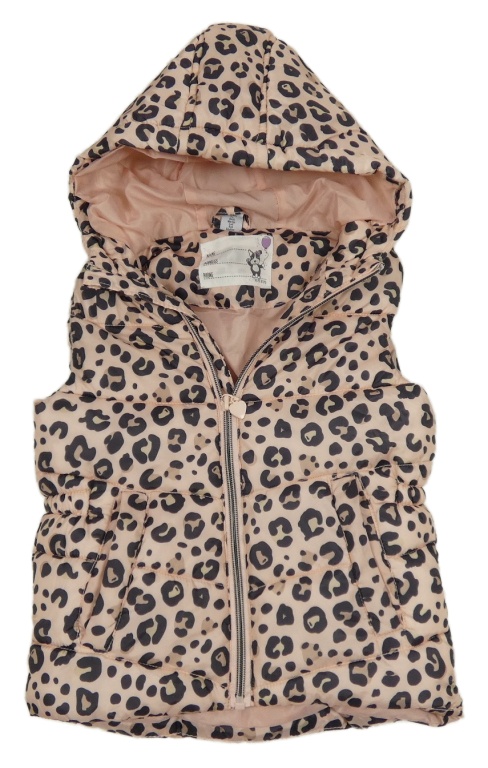 • Pudrovo-černo-světlebéžovo/hnědá vzorovaná prošívaná šusťáková zateplená vesta s kapucí dopodopo