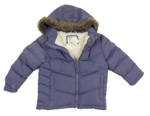 • Nová - tmavomodrofialová prošívaná šusťáková zimní bunda s nášivkou a kapucí s kožešinou SOULCAL&CO