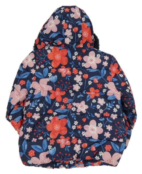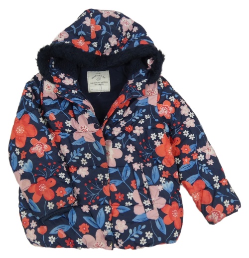 Tmavomodrá šusťáková zimní bunda s kytičkami a kapucí George