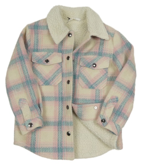 Bílo-růžovo-modrá kostkovaná vlněná zateplená košilová bunda M&S