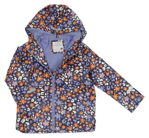 Tmavomodrá nepomokavá podzimní bunda s kytičkami