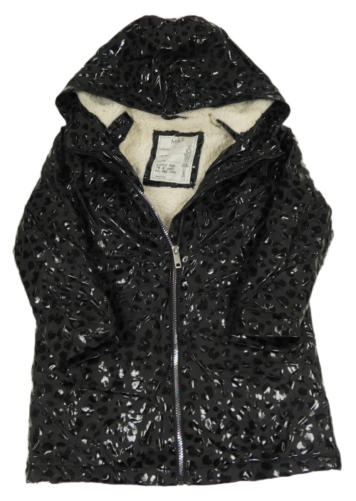 Černá leopardí zateplená nepromokavá bunda s kapucí M&S