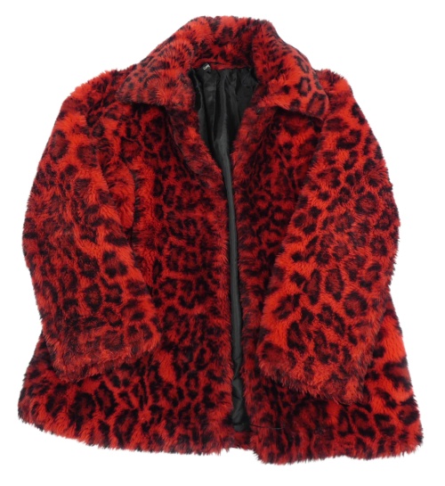 Červená kožešinová podšitá bunda s leopardím vzorem George