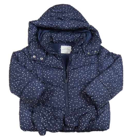 Tmavomodrá puntíkatá šusťáková zimní bunda s kapucí + rukavice Primark