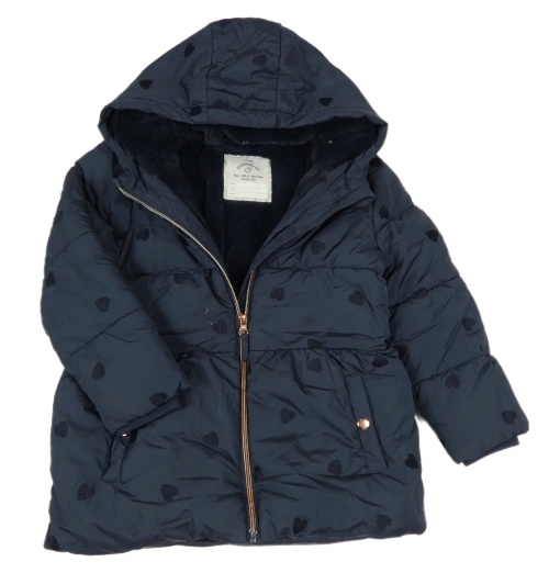 Tmavomodrá prošívaná šusťáková zimní parka se srdíčky a kapucí George