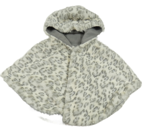 Bílo-šedo-béžové vzorované kožešinové podšité pončo s kapucí