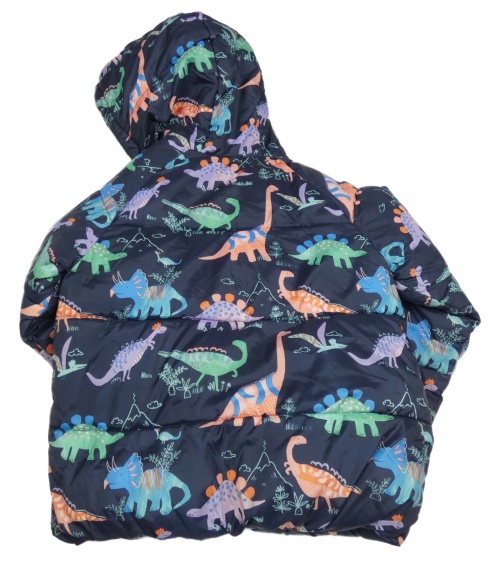Tmavomodrá šusťáková zimní bunda s dinosaury a kapucí M&S