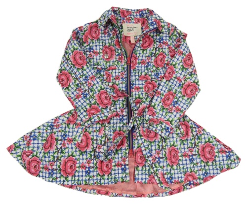 Modro-bílo-růžová květovaná šusťáková podzimní parka s páskem