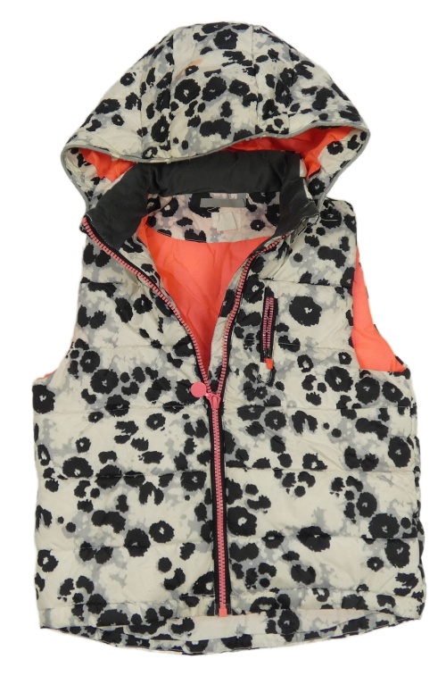 Bílo-černo-šedá vzorovaná šusťáková zateplená vesta s kapucí H&M