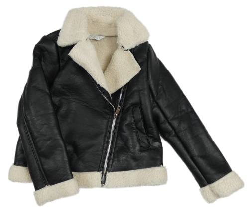 Černý koženkový zateplený crop křivák s bílým beránkem a límečkem PRIMARK