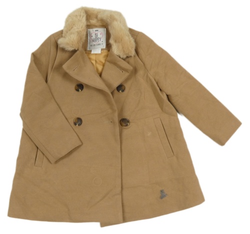 Béžový flaušový podzimní kabát s kožešinou F&F