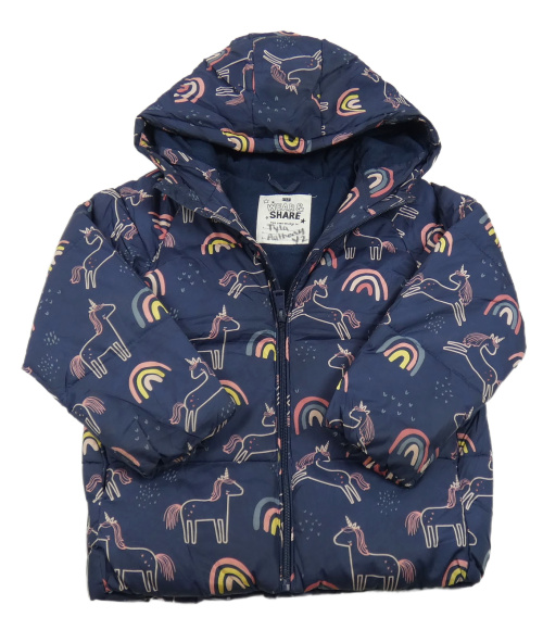 Tmavomodrá šusťáková zimní bunda s jednorožci a kapucí F&F