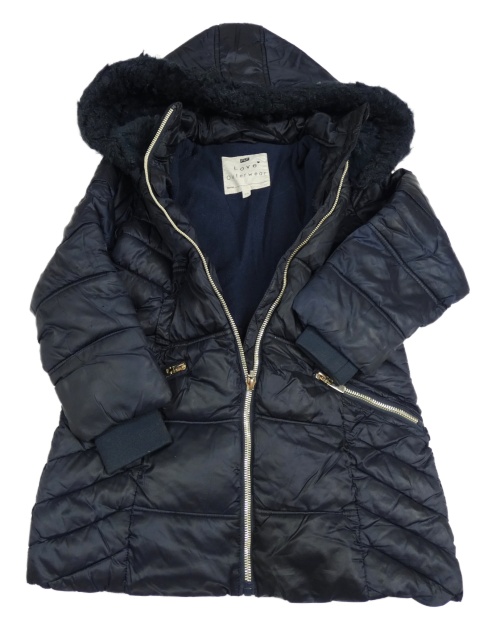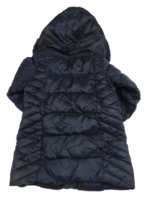 Tmavomodrý prošívaný šusťákový zimní kabát s kapucí s kožešinou F&F