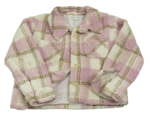 Růžovo-smetanová kostkovaná huňatá podšitá košilová bunda F&F