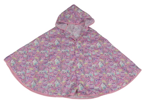 Růžové vzorované šusťákové pončo s jednorožci a kapucí