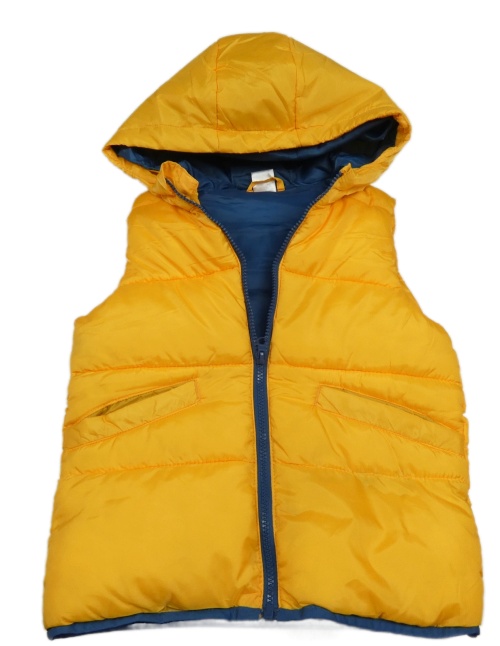 Žlutooranžová prošívaná šusťáková zateplená vesta s kapucí little kids