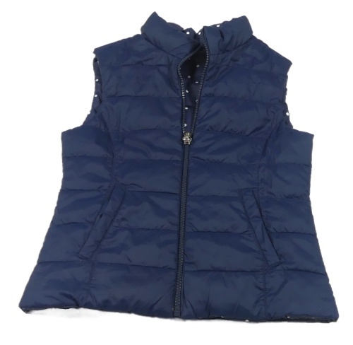 Tmavomodrá puntíkatá prošívaná šusťáková zateplená oboustranná vesta Benetton