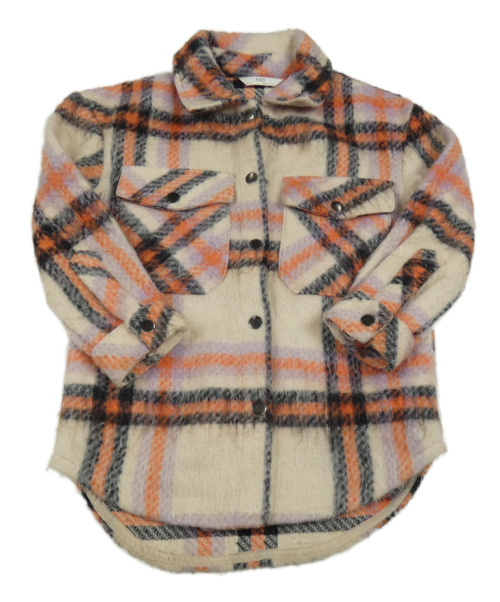 Smetanovo-růžovo-fialovo-černá kostkovaná vlněná košilová bunda M&S