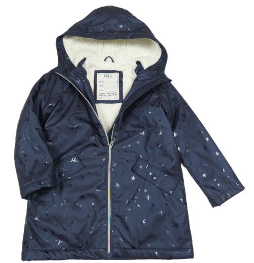 Tmavomodrá nepromokavá zateplená bunda s hvězdičkami a kapucí M&S