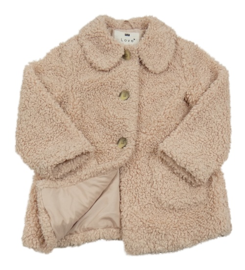 Pudrový huňatý podšitý kabát s límečkem F&F