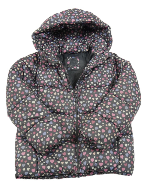 Tmavošedá prošívaná šusťáková zimní bunda se srdíčky a kapucí Sfera