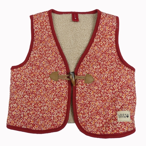 Vínová květovaná prošívaná zateplená vesta