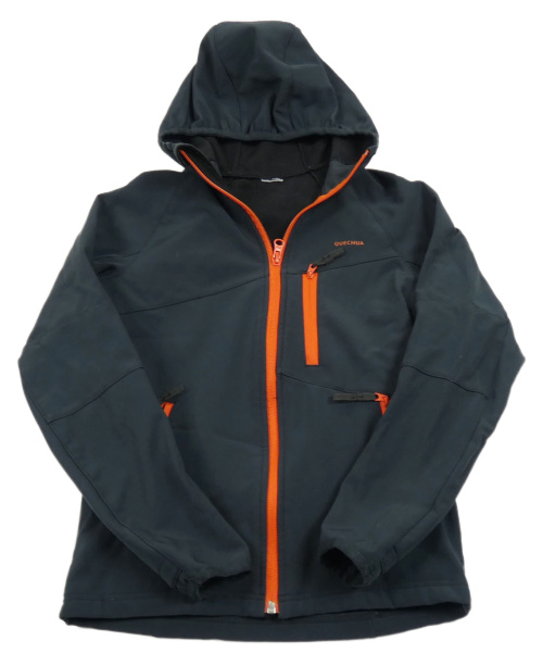 Tmavošedo-oranžová softshellová bunda s kapucí Decathlon