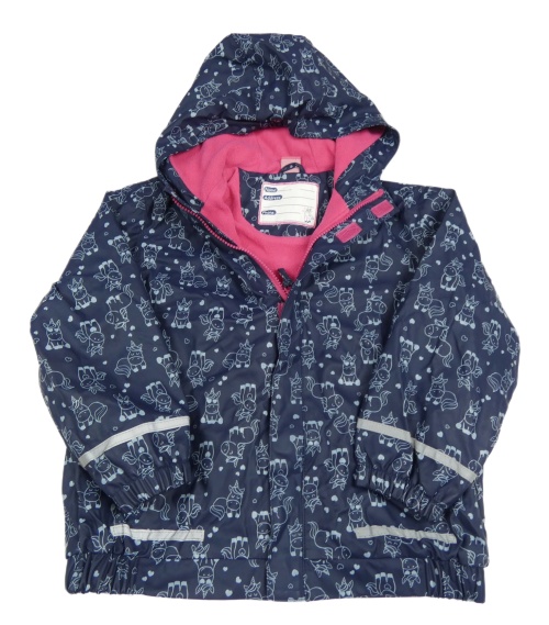 Tmavomodrá nepromokavá jarní bunda s jednorožci a srdíčky a kapucí X-MAIL
